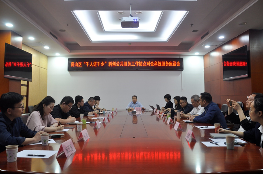 2024年4月26日下午,房山区科协召开“房山区‘千人进千企’科创公共服务工作站点对企科技服务座谈会”。 房山区科协党组书记、常务副主席钱新雨主持会议并讲话。中国生产力促进中心协会数字孪生应用分会秘书长兼项目负责人张英,副秘书长苗军光,北航数字智造团队负责人邹孝付博士,北京邮电大学博士生导师李端玲,中冶京诚工程技术有限公司高工吴启明,兵器工业集团企管顾问韩庆华,北京市科协平台专家刘亨华等多名专家参会;北京普凡防护科技有限公司、红立方集团公司、北京九州一轨环境科技股份有限公司、北京创新爱尚家科技股份有限公司、新源智储能源发展(北京)有限公司等7家高新技术企业代表参加会议。