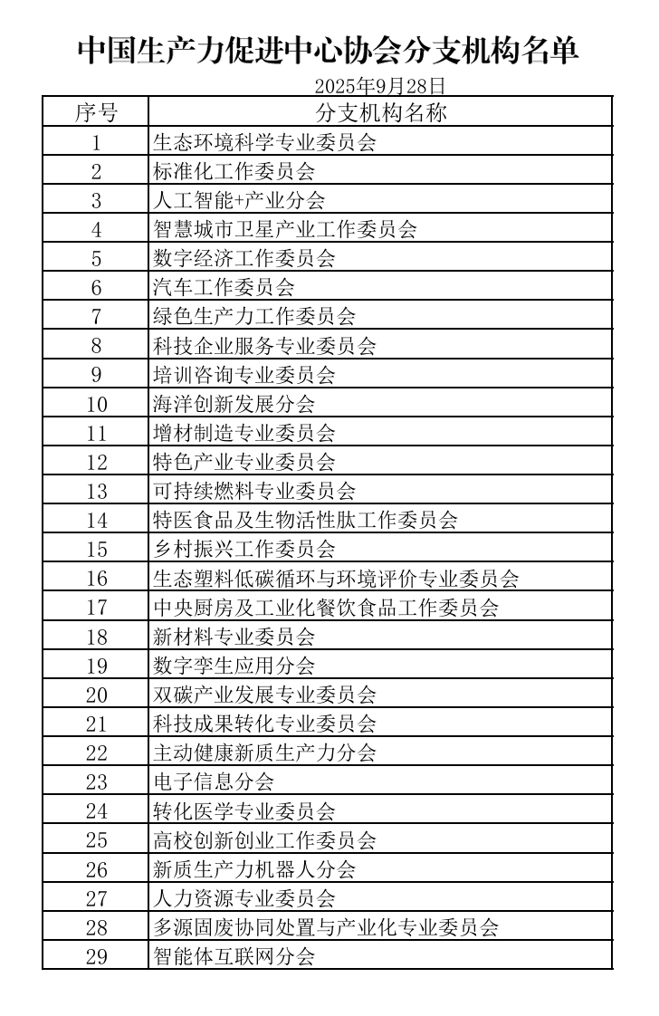 生产力中心名录